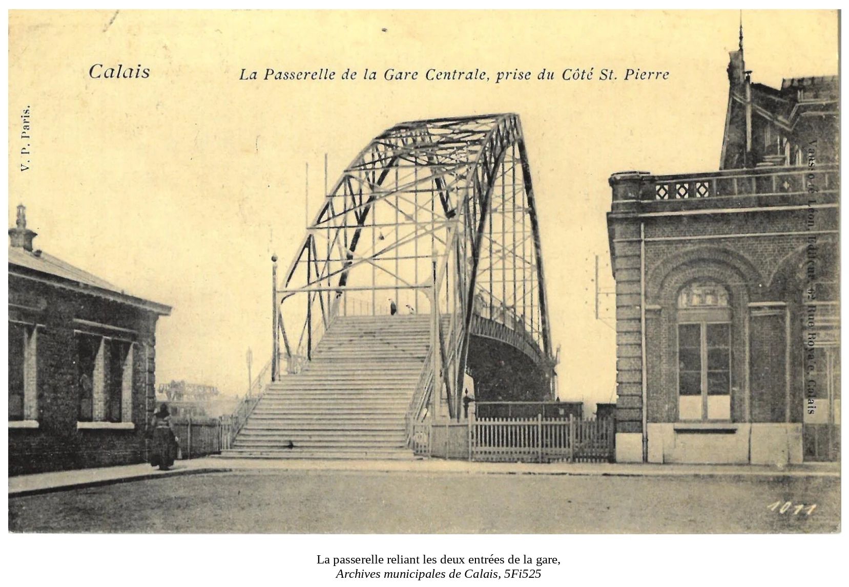 Très peu de véritables Calaisiens s’en souviennent, mais à côté de l’ancienne gare SNCF, nommée Saint-Pierre-les-Calais, se trouvait une passerelle en fer. Construite à l’occasion de l’Exposition Universelle de Paris de 1889, elle fut l’oeuvre de Gustave Eiffel.